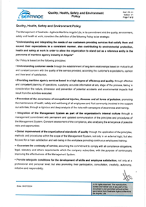 The Management of Seatrade - Agência Marítima Angola, in its commitment whit the quality, environment, safety and health at work, considers as its strategy and objectives the definition of the following Policy: