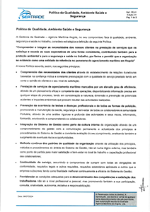 A Gerência da Seatrade – Agência Marítima Angola, no seu compromisso face à qualidade, ambiente, segurança e saúde no trabalho, considera como sua estratégia e objectivos a definição da seguinte Política: